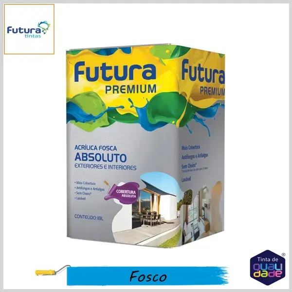 A Tinta Acrílica Fosca Absoluto Premium é um produto de qualidade superior e de maior resistência à lavabilidade. Proporcionando alta cobertura e ótimo acabamento, é indicada para pintura de superfícies internas e externas de alvenaria, massa acrílica, massa corrida, gesso e texturas. Sua película torna os ambientes mais bonitos e elegantes e permite uma maior facilidade na remoção de sujeiras provocadas por alimentos, bebidas, marcas de mão e lápis de cor, mantendo inalterada a proteção da superfície após a limpeza.